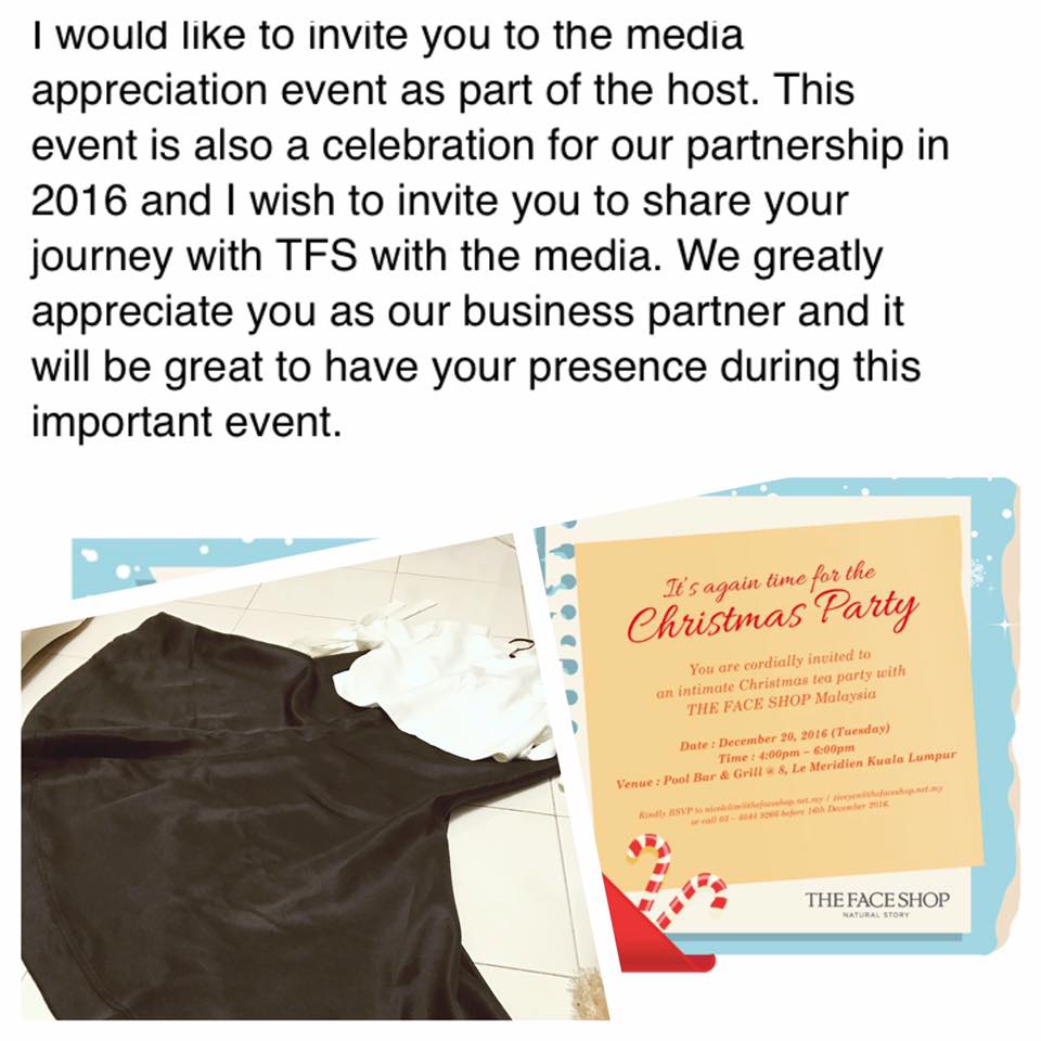 Sekali lagi patik telah dijemput oleh The Face Shop Malaysia pada 20 Disember 2016, iaitu Majlis Penghargaan Media oleh The Face Shop. Patik dan JC iaitu model tampan serta pelakon yang pernah muncul dalam filem Ola Bola iaitu JC bertindak sebagai menjadi host untuk event tersebut .